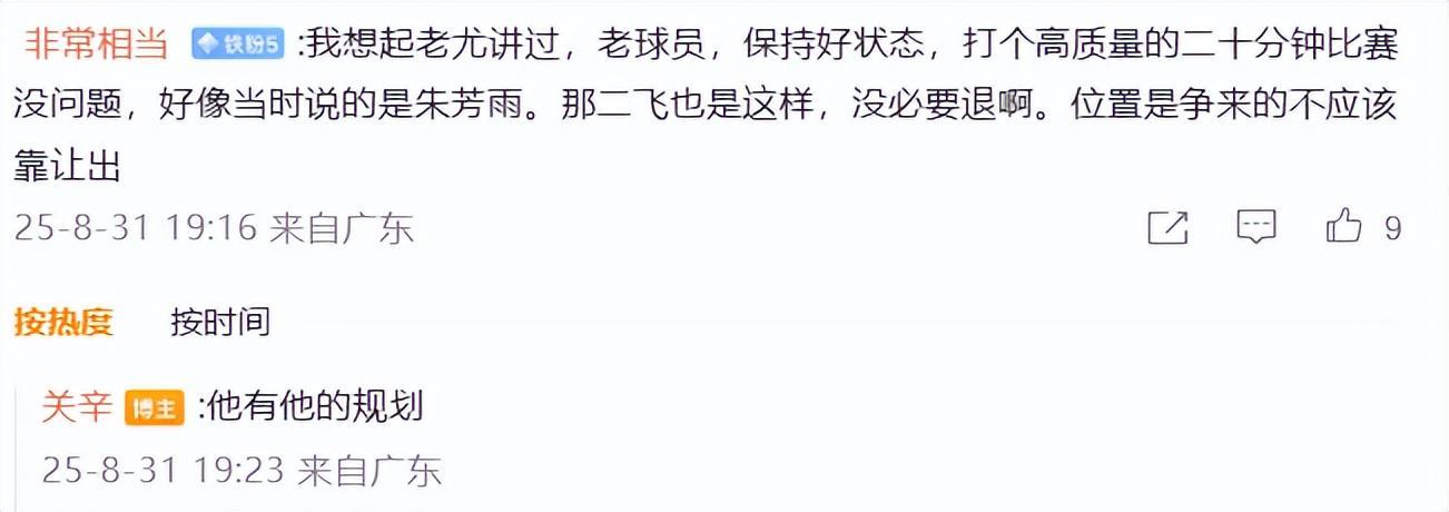 有3方面原因,1、任骏飞年纪到了,是时候该说再见了。在广东队公布注册名单后,有球迷在广东队记者关辛的动态下留言为二飞的退位感到惋惜,关辛回复道:他有他的规划。